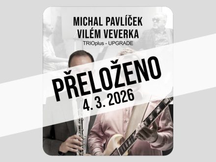 z důvodu nemoci se koncert Vilém Veverka, Michal Pavlíček & TRIOplus s názvem „UPGRADE“ přesouvá ze čtvrtka 15. ledna na náhradní termín, kterým je středa 4. března 2026 v 19:00 hodin. Zakoupené vstupenky zůstávají v platnosti. Děkujeme za pochopení!